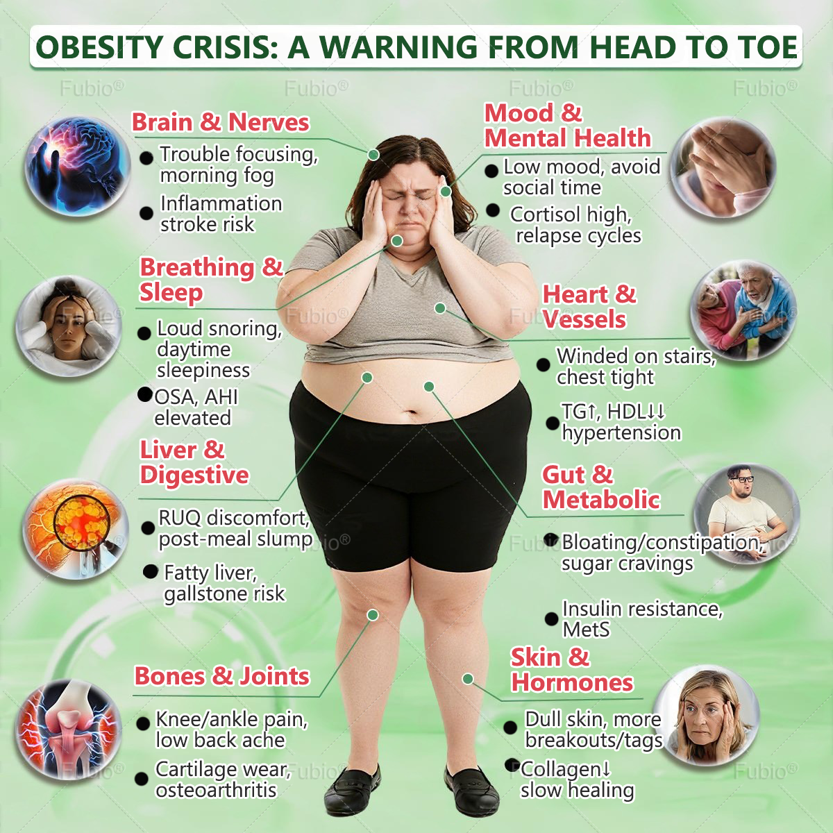 • Cancer risk:ย Increases cancer risk by 50% compared to people with healthy weight.