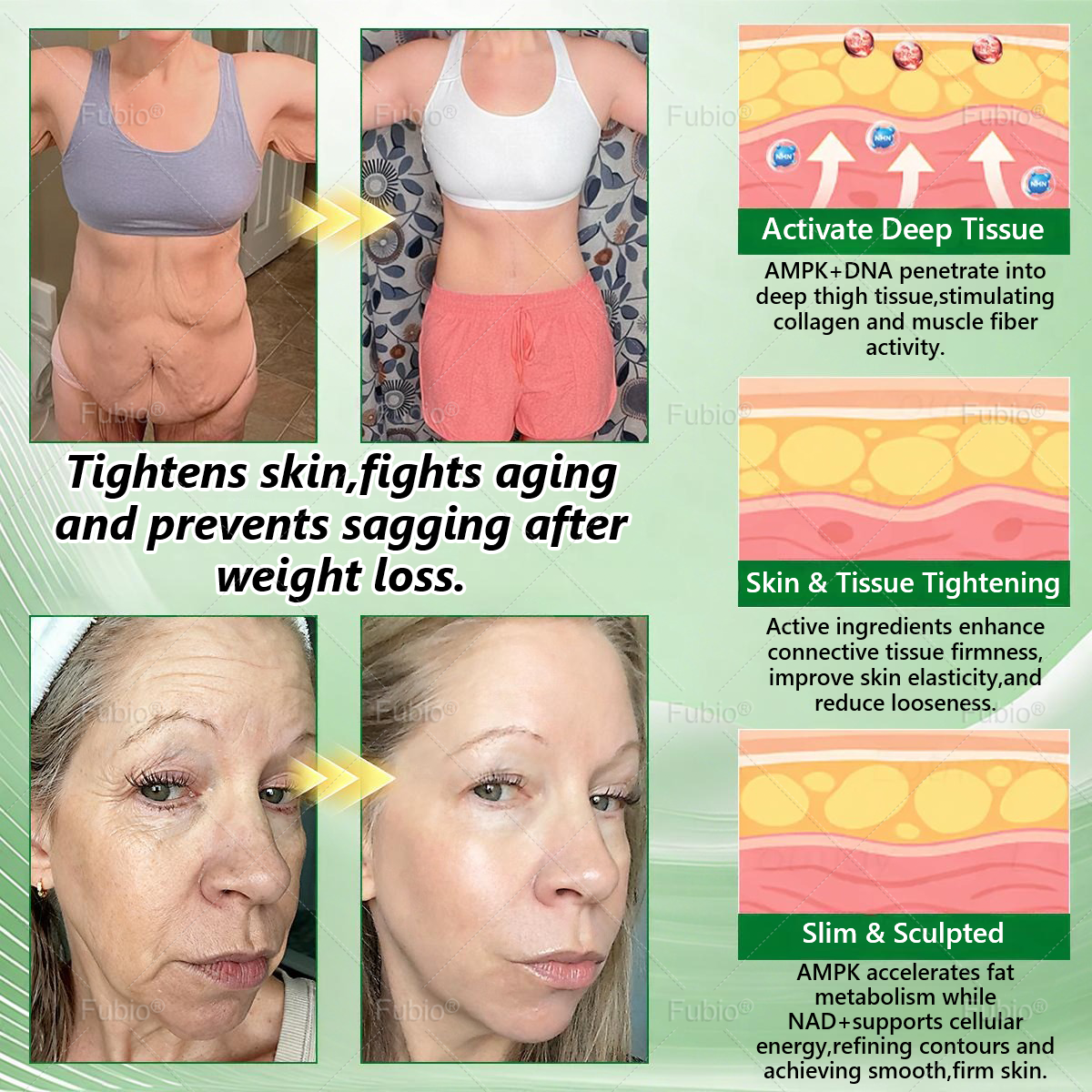 ๐‘ญ๐’–๐’ƒ๐’Š๐’ยฎ addresses skin concerns during weight loss by incorporating Collagen Peptides and collagen-boosting factors to help restore skin firmness and thickness. These key ingredients stimulate collagen and elastin synthesis, helping tighten the skin, smooth fine lines, reduce sagging, and revive a youthful, healthy glow. This ensures effective weight loss without the unwanted โ€œskinny but olderโ€ appearance, allowing slimming and rejuvenation to occur simultaneously.
